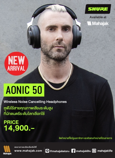 บริษัท มหาจักรดีเวลอปเมนท์ จำกัด ได้เปิดตัวหูฟังรุ่นใหม่จากแบรนด์ชื่อดัง SHURE AONIC 50 พร้อมให้คุณได้สัมผัสกับหูฟังแบบไร้สาย คุณภาพเสียงระดับพรีเมี่ยมสตูดิโอ ที่ถูกพัฒนาด้วยประสบการณ์ระดับมืออาชีพกว่าทศวรรษ ช่วยให้คุณได้ฟังเสียงที่สมจริงจากเพลงโปรดของคุณแบบไม่สะดุดในทุกๆ ที่ ด้วยคุณสมบัติไร้สาย อีกทั้งยังมาพร้อมระบบจัดการเสียงรบกวนภายนอก ที่ตั้งค่าได้ตามที่คุณต้องการใน SHURE AONIC 50 หนึ่งใน Series หูฟังรุ่นใหม่ล่าสุดที่พร้อมถ่ายทอดเสียงในแบบที่ศิลปินระดับโลก Adam Levine เลือกแล้ว มีให้เลือกแล้ววันนี้! ถึง 2 สี ได้แก่ สีน้ำตาล และ สีดำ