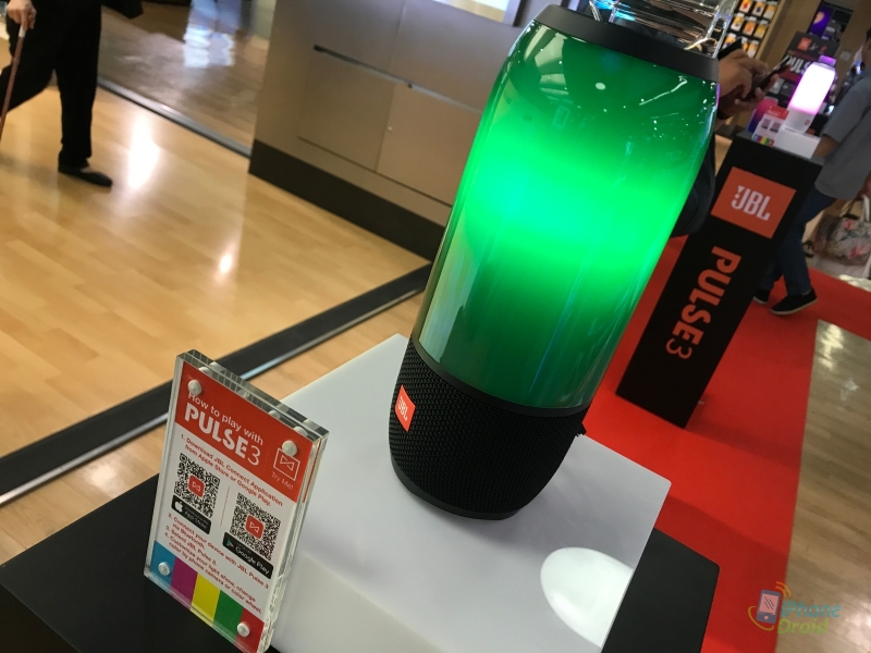 สำหรับ JBL Pulse3 ลำโพงบลูทูธแบบพกพาให้เสียงรอบด้านแบบ 360 องศา มาพร้อมกับตัวหลอดไฟ LED ที่เรืองแสงได้ทุกที่ พร้อมแบตเตอรี่ในตัว ที่สามารถใช้งานได้ยาวนานถึง 12 ชั่วโมง และมาตรฐานการกันน้ำในระดับ IPX7 สามารถทำให้พกพาไปชายหาย หรือสระว่ายน้ำ ได้อย่างไร้กังวล ด้วยเทคโนโลยี JBL Connect + ที่ให้คุณสามารถเชื่อมโยงแบบไร้สายได้มากกว่า 100 เครื่อง JBL Pulse 3 ยังมีระบบตัดเสียงรบกวน และด้วย App JBL Connect ทำให้คุณสามารถปรับแต่งการแสดงแสงที่ง่ายดายผ่านทาง App อีกด้วย สำหรับราคาเปิดตัวอยู่ที่ 8,990 บาท นอกจากนี้ เรายังติดตั้ง Display ลำโพง JBL Pulse 3 ตลอดทางเดินในพาวเวอร์บาย สาขาเซนทรัลเวิล์ด ให้ทุกคนได้ทดลองพลังเสียงสุดมันส์ของ JBL Pulse 3 ตั้งแต่วันที่ 16-24 ก.ย. นี้