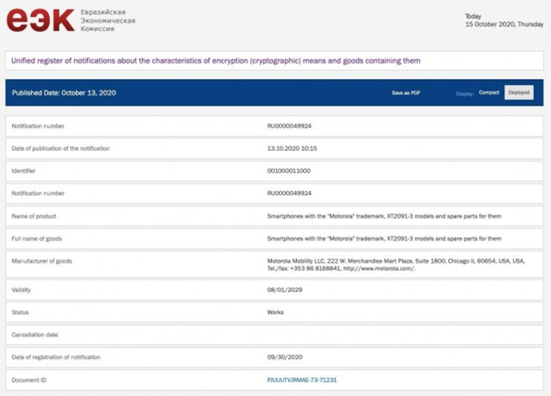 นอกจากนี้ ฝั่งของ EEC เปิดเผยข้อมูลโมเดล XT2091-3 ว่าจะเป็นรุ่น Moto G9 Power ครับ ขณะที่รุ่นอื่นต้องมาดูกันครับว่าจะเป็นรุ่นไหนกันบ้าง