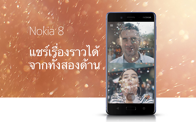 โนเกีย ภายใต้การดูแลของบริษัท HMD Global เผยโฉมสมาร์ทโฟนรุ่นใหม่ Nokia 8 สมาร์ทโฟนเรือธง ที่มาพร้อมระบบปฎิบัติการแอนดรอยด์เวอร์ชั่นใหม่ล่าสุดของการสื่อสารแบบไร้ขีดจำกัด พร้อมนิยามใหม่ของการถ่ายทอดไลฟ์สไตล์ผ่านเลนส์แบบเรียลไทม์ด้วยครั้งแรกของ 3 ปรากฎการแห่งนวัตกรรมที่เหมาะสำหรับคนที่ชอบสร้างคอนเทนต์ (content creator) นอกจากนี้ ตัวเครื่องเป็นวัสดุอลูมิเนียม บางเฉียบ พร้อมการออกแบบอย่างสวยงาม แฝงไปด้วยความคงทน และแนวคิดสร้างสรรค์ Nokia 8 ทำงานด้วยระบบปฎิบัติการแอนดรอยด์เวอร์ชั่นใหม่ล่าสุด รวมถึงโครงสร้างที่มาพร้อมกับกล้องคู่แบบ Dual-Camera และประสิทธิภาพของ ZEISS เลนส์กล้องชั้นยอดระดับโลกเพื่อตอบโจทย์การใช้งานด้านการถ่ายภาพ