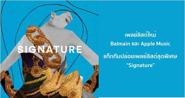 Balmain และ Apple Music ร่วมกันสร้างเพลย์ลิสต์ “Signature” ที่รวบรวมเพลงจากการคัดสรรของ Olivier Rousteing ผู้กำกับศิลป์แห่ง Balmain และทีมบรรณาธิการของ Apple Music นับเป็นการร่วมมือกันครั้งแรกของทั้งสองฝ่าย