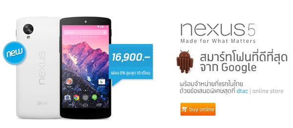 Nexus 5 รุ่น 16GB ทั้ง 2 สี วางขายแล้วที่ dtac online store ราคา 16,900 บาท