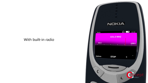 ตามคอนเซ็ปต์นี้ Nokia 3310 มาพร้อมหน้าจอแสดงผลแบบสีขนาด 1.5 นิ้ว พร้อมวิทยุ FM ในตัว โดยมีกล้องถ่ายรูปด้านหลังสำหรับถ่ายภาพนิ่งและวิดีโอ