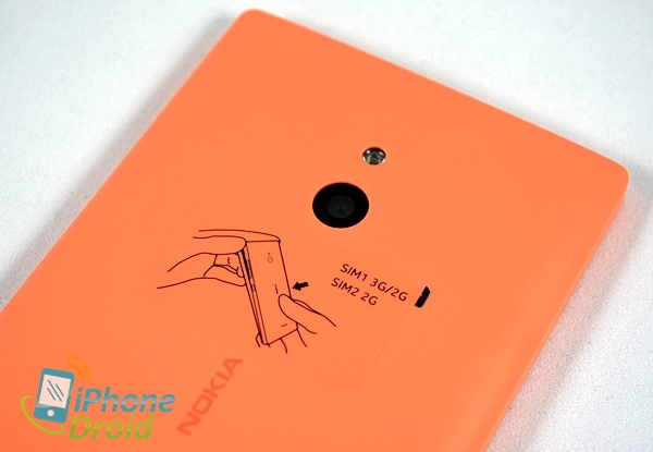ช่องซิม 1 สำหรับใส่ซิมที่ต้องการเชื่อมต่อ 3G รองรับเฉพาะคลื่น 900/ 2,100 MHz ส่วนช่องใส่ซิม 2 รองรับเฉพาะ 2G และมีช่องสำหรับ microSD รองรับความจุสูงสุด 32GB