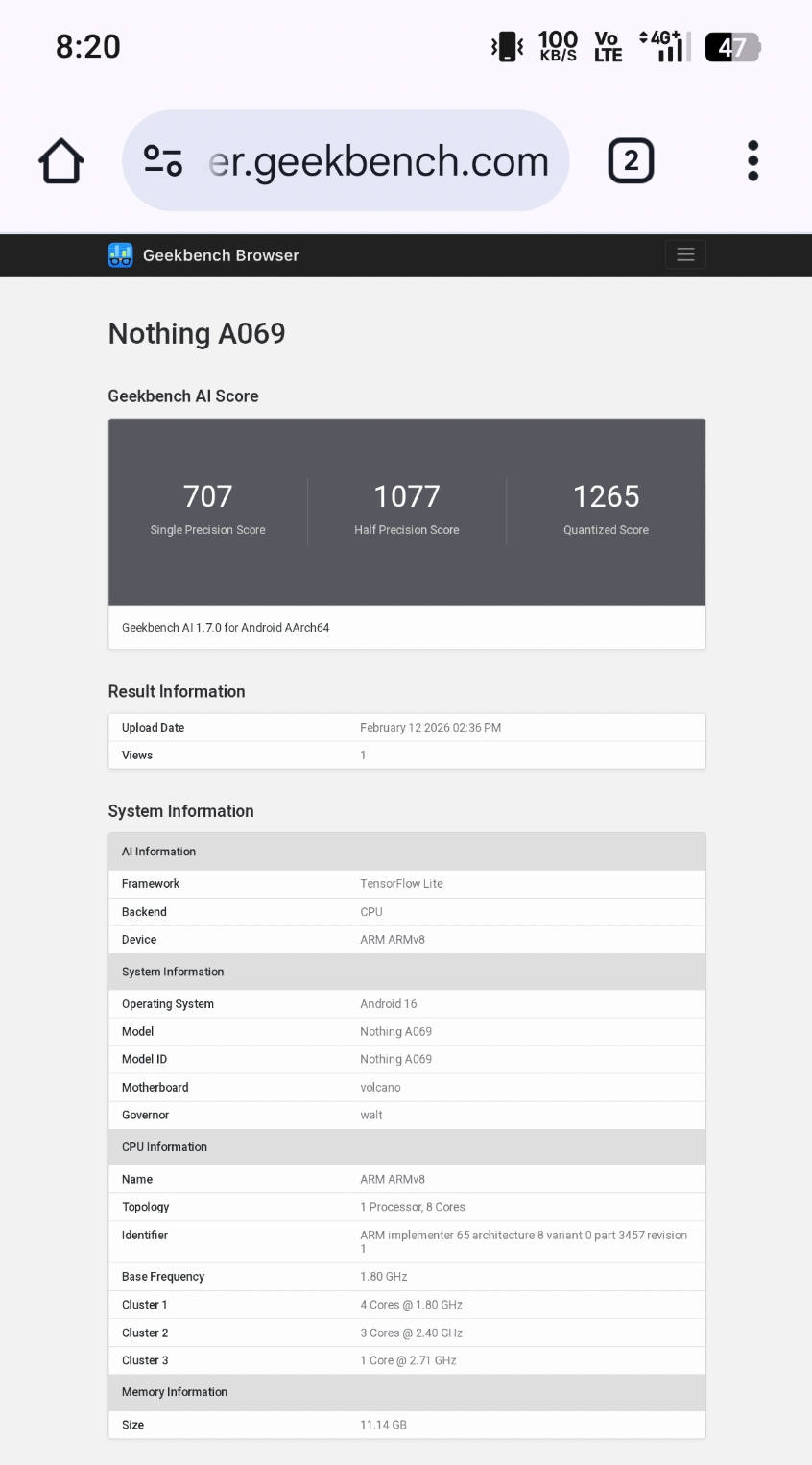 โดยทิปส์เตอร์ Abhishek Yadav แชร์ผลทดสอบของ Nothing A069 ที่คาดกันว่าจะเป็น Phone (4a) Pro จาก Geekbench AI ข้อมูลสเปคที่ทดสอบระบุชัดวารุ่นนี้ใช้ชิป Snapdragon 7s Gen 4 และมี RAM 12GB ด้วยครับ