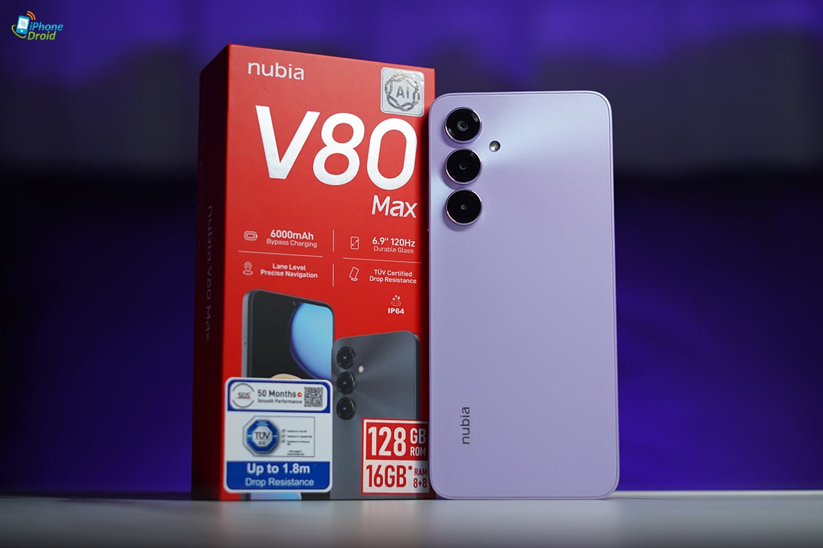 nubia V80 Max ในรุ่นความจุ 8GB+128GB เปิดราคา 3,999 บาท มีให้เลือก 3 สี สีดำ Space Black, สีทอง Aurelia Gold, สีม่วง Stardust Purple (สีที่รีวิว)
