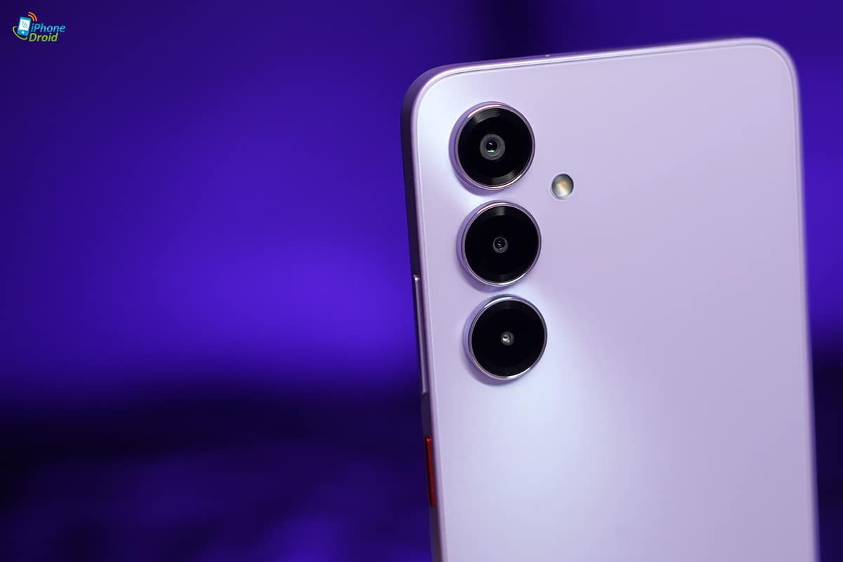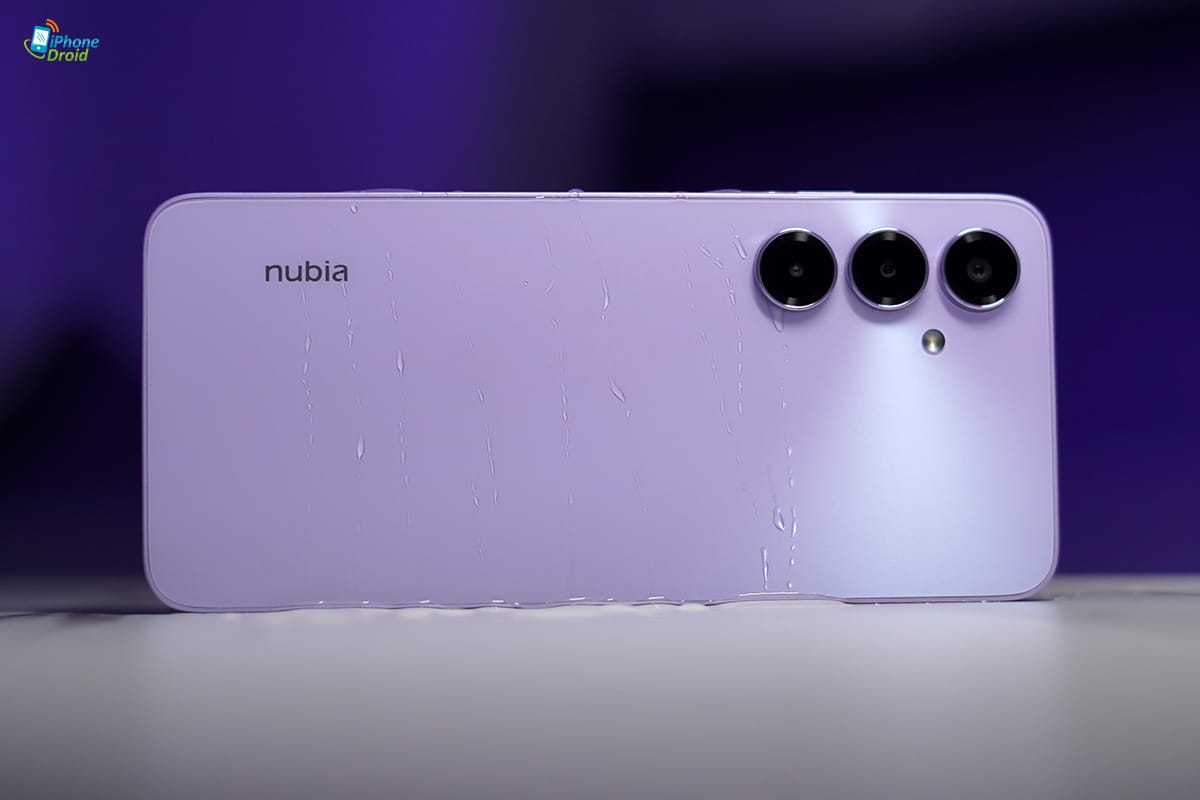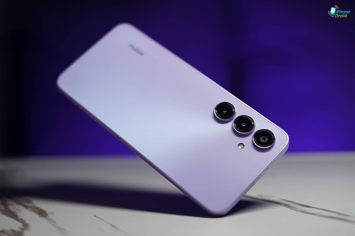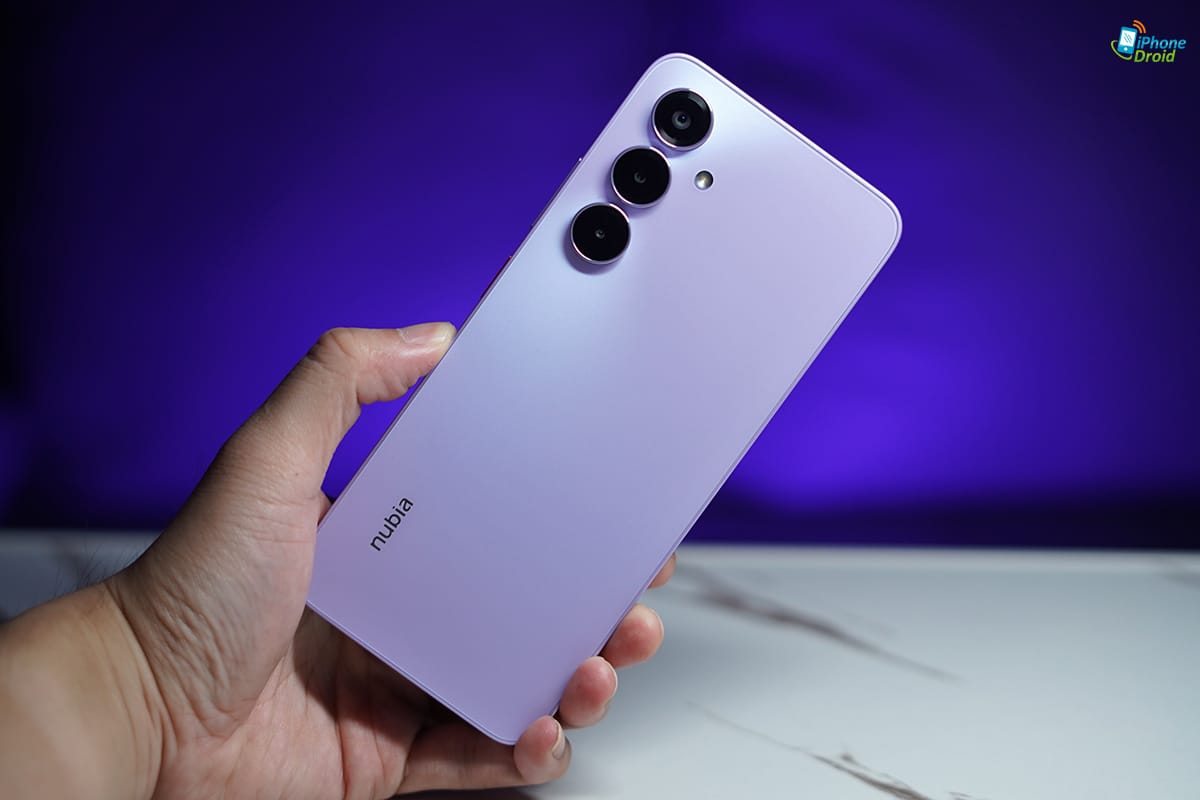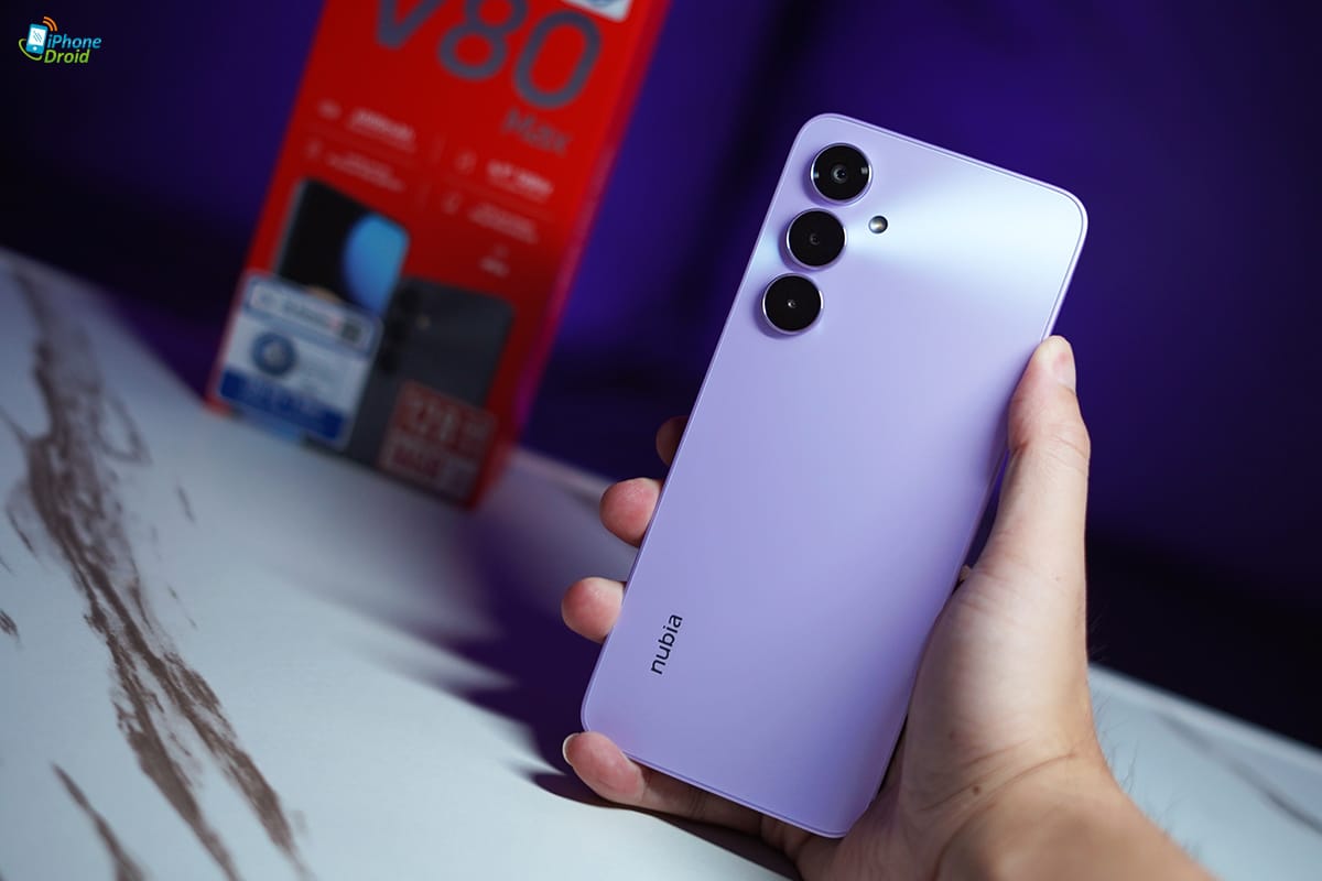 มาดูดีไซน์ด้านหลังกันบ้าง nubia V80 Max จะได้ดีไซน์ที่เรียบง่ายขึ้นอีกหน่อย ด้วยการวางกล้องลงมาในแนวตั้ง 3 ตัว และฝาหลังเป็นแบบเรียบ ๆ ส่วนสีสัน ที่เราได้มาจะเป็นสีม่วง Stardust Purple ที่ดูมีความแฟนซี โดดเด่นอยู่ไม่น้อยเลยล่ะครับ