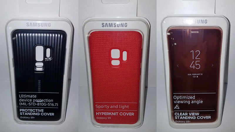 เคสสำหรับ Galaxy S9 และ S9+ อย่างเป็นทางการจาก Samsung หลุดออกมาให้ได้เห็นกันแล้ว โดยจะมีด้วยกัน 2 สไตล์ ได้แก่ Hyperknit และ Protective Standing Cover ซึ่งได้มาตรฐานความแข็งแรงทนทานในการใช้งาน MIL-STD-810G-516.7 สามารถปกป้องความเสียหายให้กับตัวเครื่องในกรณีที่ทำตกลงพื้นที่ระดับความสูงไม่เกิน 4.9 ฟุตหรือไม่เกิน 1.5 เมตร