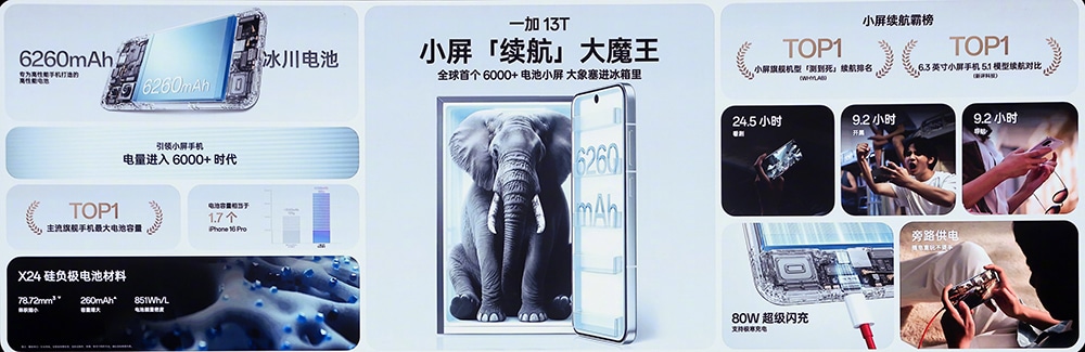 แบตเตอรี่ OnePlus 13T ให้มาจัดเต็มถึง 6260mAh แม้ตัวเครื่องจะเล็กเน้นพกพาก็ตาม เคลมว่าเป็นมือถือจอเล็กที่มีแบตฯใหญ่ที่สุดเลยก็ว่าได้ครับ แถมยังมีระบบชาร์จไวที่ 80W SUPERVOOC อีกด้วย