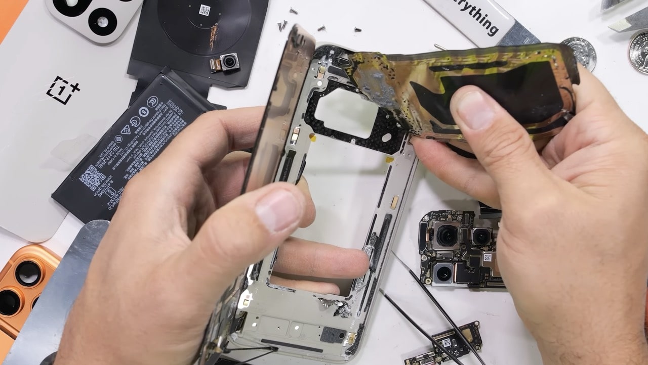 และหลังจากทดสอบตัวเครื่องไปแล้ว ช่วงครั้งหลังของวิดีโอจะเป็นการแกะเครื่องดูชิ้นส่วนภายใน เพื่อเช็กตัวระบบระบายความร้อนที่ OnePlus เคลมว่ารุ่นนี้ได้ระบบระบายความร้อนแบบ 360º ซะเลย ซึ่งภายในเราจะเห็นตัวระบายความร้อน 2 ชิ้นประกบเข้าที่ตำแหน่งชิปเซ็ต