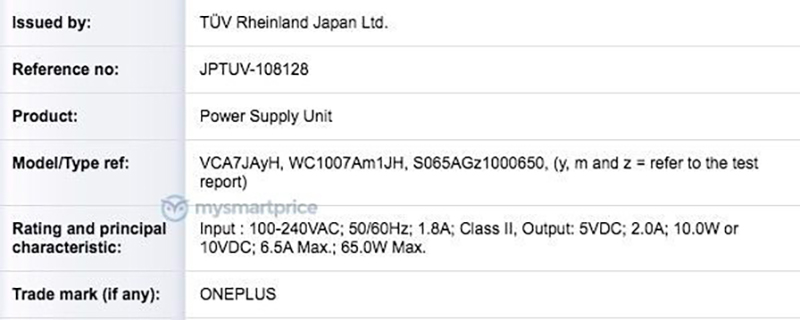 Fast Charge 65W อาจจะมีการนำมาใช้งานกับเรือธงรุ่นถัดไปของค่าย แถมเพิ่งจะผ่านการรับรองหัวชาร์จ 10V/6.5A ที่ TUV Rheinland