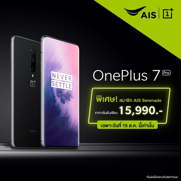 เริ่มต้นด้วยโปรโมชั่น AIS Serenade ฉลองครบรอบ 15 ปี เมื่อซื้อ OnePlus 7 Pro รุ่น 6+128GB สี Mirror Grey จากราคา 24,990 เหลือเพียง 17,990 บาท พิเศษมากยิ่งขึ้น ลูกค้ายังสามารถใช้ AIS Point 200 พ้อยท์ ลดเพิ่มสูงสุดถึง 9,000 บาท เหลือเพียง 15,990 บาท เฉพาะวันที่ 15 สิงหาคม 2562 วันเดียวเท่านั้น จำกัดสิทธ์ 2,500 สิทธิ์ รายละเอียดเพิ่มเติมคลิก https://bit.ly/2z02J4k