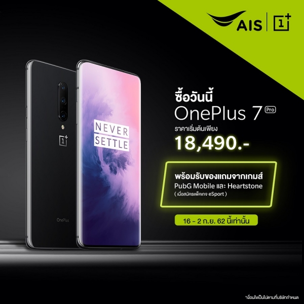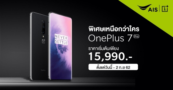 และตั้งแต่ 16 สิงหาคม – 2 กันยายน 2562 พบกับโปรโมชั่น Hot Deal จาก AIS ให้คุณเป็นเจ้าของ OnePlus 7 Pro ได้ง่ายมากยิ่งขึ้น รับส่วนลดค่าเครื่องสูงสุด 7,000 เมื่อสมัครแพ็กเกจรายเดือนเริ่มต้นที่ 649 บาทต่อเดือน ชำระค่าบริการล่วงหน้า 1,000 บาท