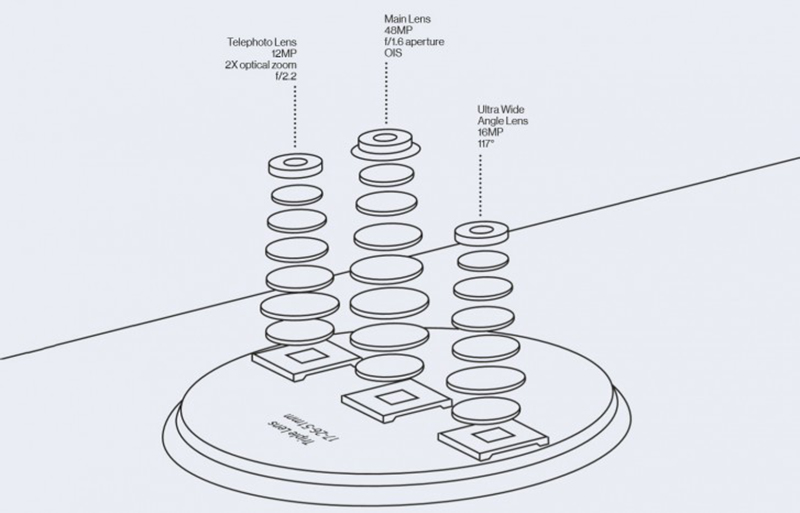 ส่วนกล้องมาพร้อม 3 เลนส์ แบ่งเป็นเลนส์หลักความละเอียด 48 ล้านพิกเซล เซ็นเซอร์ Sony IMX586 รูรับแสง f/1.6 + เลนส์ Telephoto 2x ความละเอียด 12 ล้านพิกเซล + เลนส์ Ultra-Wide 117 องศา ความละเอียด 16 ล้านพิกเซล