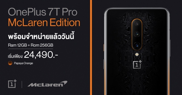 OnePlus 7T Pro McLaren Limited Edition สมาร์ทโฟนที่สุดเหนือใคร แฟนตัวจริงไม่ควรพลาด ด้วยดีไซน์ฝาหลังที่โดดเด่นด้วยลวดลายที่ได้รับแรงบันดาลใจมาจากรถสปอร์ต McLaren Speedtail 2020 และขอบตัวเครื่องสีส้มที่เป็นเอกลักษณ์ มาพร้อมกับ Protective case และ User Interface พิเศษที่ออกแบบมาเพื่อใช้เฉพาะรุ่นนี้เท่านั้น เหนือไปอีกระดับด้วย RAM 12 GB ที่เร็วแรงสุด และชิปเซ็ทขุมพลัง Qualcomm Snapdragon 855+ เพิ่มประสิทธิภาพมากกว่าชิปเซ็ทเดิมถึง 15% การแสดงผลภาพจึงลื่นไหล ไม่มีสะดุด ทรงพลังยิ่งขึ้นด้วยหน้าจอที่มีค่ารีเฟรชเรทที่ 90 Hz จะทำให้ภาพกราฟิกสวยเนียนตา อีกทั้ง Warp Charge 30T ที่ชาร์จแบตเตอรี่ 70% เพียง 30 นาที ทำให้การเล่นเกมเหนือระดับขึ้นไปอีกขั้น หรือจะเป็นคนชื่นชอบดูหนัง ฟังพลงที่สมบูรณ์แบบ กับหน้าจอ Fluid Display จอใหญ่เต็มตาขนาด 6.67 นิ้ว รองรับการแสดงผลความละเอียด HDR10+ คมชัดทุกรายละเอียด พร้อมลำโพงคู่อย่าง Dolby Atmos ระบบเสียงสเตริโอ