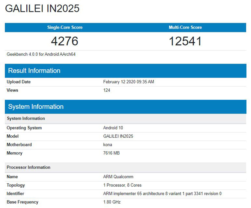 ในเดือนมกราคมที่ผ่านมาบน Geekbench ได้ปรากฏโค๊ดเนมสมาร์ทโฟน GALILEI IN2023 ที่เป็น OnePlus 8 Pro ล่าสุด GALILEI IN2025 ก็ปรากฏด้วยเช่นกัน โดยเป็น OnePlus 8 ที่เผยสเปคออกมาบางส่วนแล้วเช่นกัน