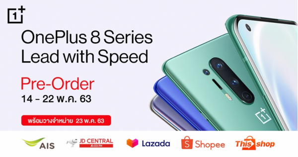 วันพลัส (OnePlus) เปิดตัวอย่างเป็นทางการในประเทศไทยกับสมาร์ตโฟนซีรีส์ล่าสุด “OnePlus 8 Series  สมาร์ตโฟนแฟล็กชิพพรีเมียมรุ่นใหม่ โดย OnePlus 8 Series มาพร้อม      คอนเซ็ปต์ Lead with Speed เร็วแรง ทรงพลัง ในดีไซน์ที่สวยงาม ด้วยหน้าจอที่มาพร้อมกับค่ารีเฟรชเรทสูง 120 Hz พร้อมที่จะมอบประสบการณ์การใช้งานระดับพรีเมียมที่ไม่เคยมีมาก่อน โดยเปิดตัวด้วยกันทั้งหมดสองรุ่นคือ OnePlus 8 Pro และ OnePlus 8