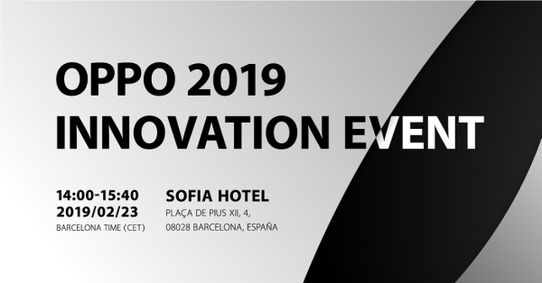งาน OPPO 2019 Innovation Event จัดขึ้นในวันที่ 23 กุมภาพันธ์ 2019 ณ โรงแรม Sofia Hotel เมืองบาร์เซโลนา ประเทศสเปน ในเวลา 14.00 – 15.40 น. ตามเวลาท้องถิ่น