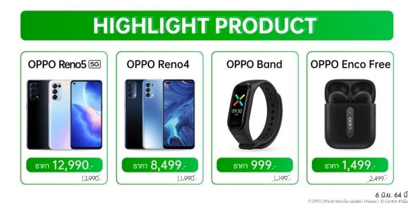 - Follow us! Voucher คูปองพิเศษเมื่อติดตาม OPPO Official Store ตั้งแต่วันที่ 1 มิถุนายน 2564 รับฟรี! คูปองส่วนลด 120 บาท เมื่อซื้อขั้นต่ำ 899 บาท โดยสามารถใช้คูปองได้ในวันที่ 6 – 8 มิถุนายน 2564 เท่านั้น