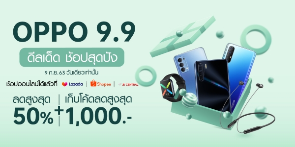 สายช้อปห้ามพลาด! สมาร์ทโฟนออปโป้และแก็ตเจ็ต แคมเปญ OPPO 9.9 ลดสูงสุดถึง 50% พร้อมของแถมเพียบ วันเดียวเท่านั้น!