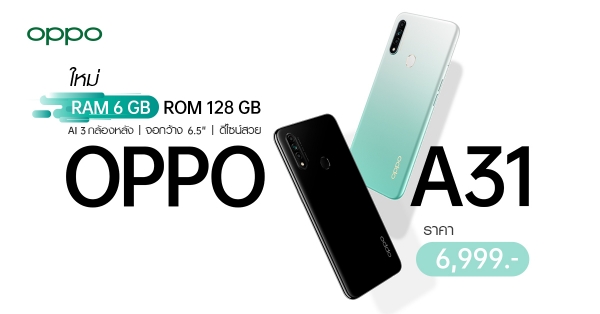 โดย OPPO A31 RAM 6GB + ROM 128GB พร้อมวางจำหน่ายแล้วตั้งแต่วั