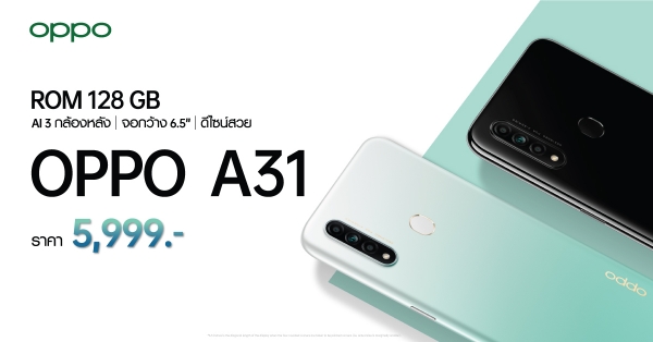 โดย OPPO A31 พร้อมวางจำหน่ายแล้ววันนี้ทั้ง 2 สีคือ สีขาว Fantasy White และ สีดำ Mystery Black ในราคา 5,999 บาท สามารถซื้อได้แล้ววันนี้กับตั