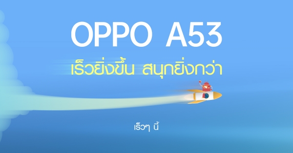 OPPO แบรนด์สมาร์ทโฟนยอดนิยมในประเทศไทย เตรียมเปิดตัวสมาร์ทโฟน A Series รุ่นใหม่ล่าสุด หลังจากที่ทาง OPPO Thailand Official Page ได้โพสต์ภาพพร้อมข้อความว่า “OPPO A53 เร็วยิ่งขึ้น สนุกยิ่งกว่า เร็วๆนี้” ก็เป็นที่ยืนยันแล้วว่า จะมีการนำ OPPO A53 เข้ามาจำหน่ายในประเทศไทยอย่างแน่นอน