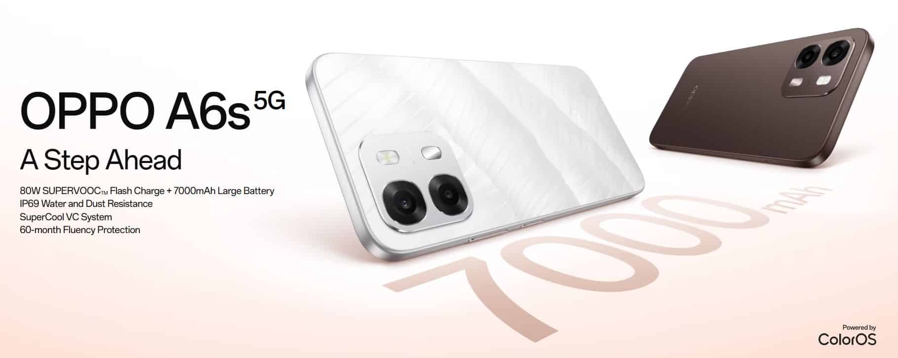 เปิดตัว OPPO A6s 5G มาพร้อมกันน้ำ IP69 ขุมพลัง Dimensity 6300 และแบตฯ 7000mAh