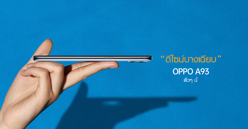 โดยวันนี้ OPPO TH Official Facebook ได้โพสวิดีโอที่มีการแสดงถึงดีไซน์สวย เบา บาง กับการเปิดซองจดหมายที่มี OPPO A93 ซ่อนไว้ข้างในได้อย่างแนบเนียน พร้อมข้อความว่า “OPPO A93 ดีไซน์บางเฉียบ” ที่ถือได้ว่าเป็นการแสดงถึงจุดเด่นด้านดีไซน์ของ OPPO A93 ได้เป็นอย่างดี