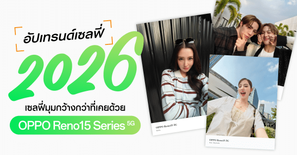 เปิดปี 2026 มาพร้อมกับเทรนด์การถ่ายภาพ การเซลฟี่ไม่ได้จำกัดอยู่แค่การเห็นใบหน้าชัดเจนเพียงอย่างเดียว แต่ต้อง “เก็บครบ” ทั้งบรรยากาศ และเพื่อนรอบข้าง เพื่อเล่าเรื่องราวรอบตัวให้สมบูรณ์แบบยิ่งขึ้น ล่าสุดเหล่าศิลปิน OPPO Family นำโดย “เบลล่า ราณี” “โบว์ เมลดา” และ “ซี พฤกษ์ – นุนิว ชวรินทร์” ได้ร่วมแชร์โมเมนต์สุดน่ารักผ่านโซเชียลมีเดีย โชว์ภาพเซลฟี่ที่มาพร้อมระยะใหม่ 0.6x มอบมุมกว้างกว่าที่เคย และคมชัดสะดุดตา ด้วย OPPO Reno15 Series 5G สมาร์ตโฟนเพื่อนซี้ เทรนดี้ทุกช็อต