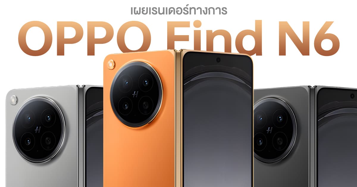 OPPO Find N6 เริ่มโปรโมทกันมาตั้งแต่ช่วงปลายเดือนที่แล้ว พร้อมกับสเปคหลุดมาแบบครบ ๆ วันก่อน ล่าสุดก็ถึงคิวดีไซน์ตัวเครื่องแล้วครับ มีภาพเรนเดอร์หลุดมาครบ 3 สีเลยรอบนี้!