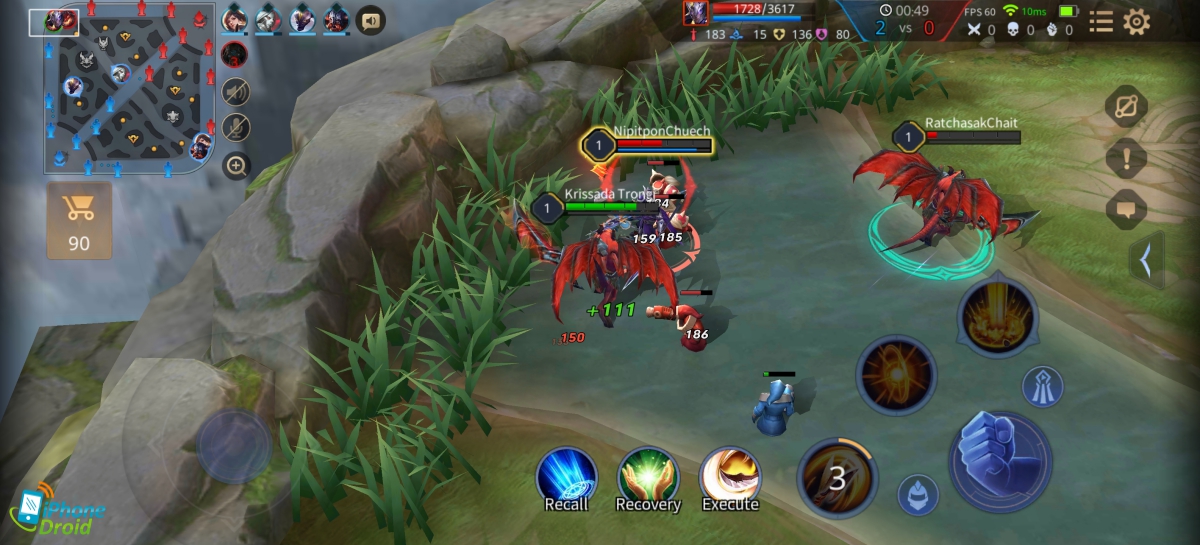สำหรับเกมฮิตอย่าง ROV เราเปิดภาพสูงที่สุดทั้งหมดครับ พร้อมกับเฟรมเรทระดับสูงด้วย แน่นอนว่าก็เล่นได้แบบไหลลื่นและสมูธมากๆ เฟรมเรทวิ่งคงที่ประมาณ 59-60fps ตลอดทั้งเกม หรือบางทีก็ทะลุไปถึง 61fps ในบางจังหวะก็มี ไม่ว่าจะช่วงบวกกันกลางเลนหรือป้องใหญ่ก็ไม่มีสะดุดครับ