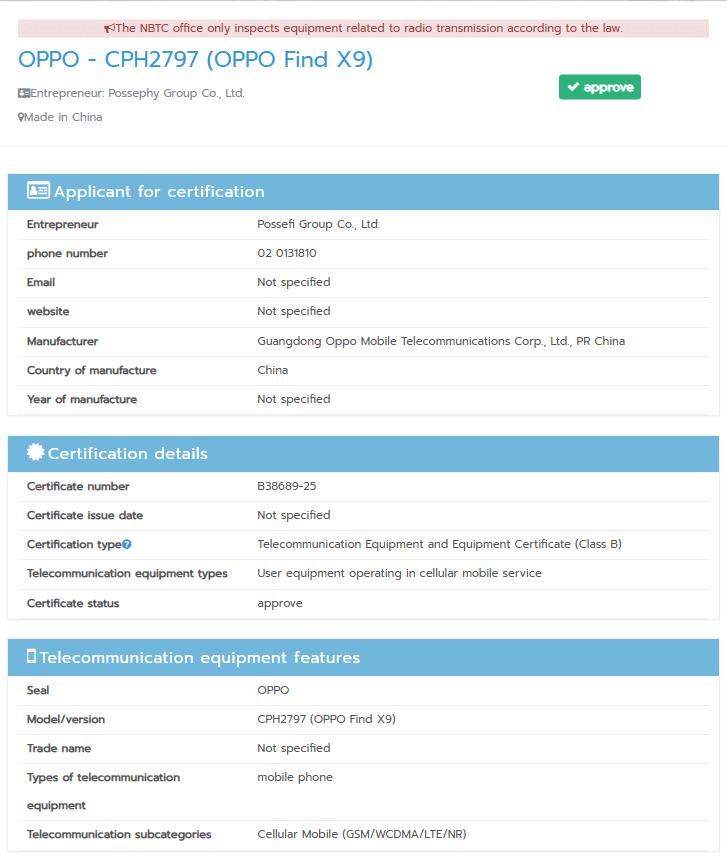 จริงๆ ไม่ใช่แค่ในไทย แต่ทั้งคู่ยังรองรับจาก GCF, BIS ในเดีย, IMDA ของสิงคโปร์ และ SDPPI ของอินโดนีเซีย ส่วนรุ่น Find X9 ก็รับรองแล้วจาก SIRIM ในมาเลเซียด้วย