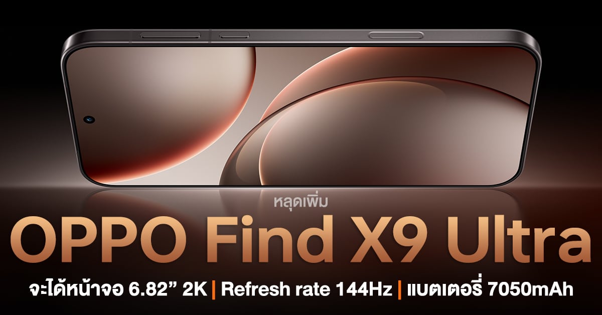 ลือกันต่อกับ OPPO Find X9 Ultra ว่าที่เรือธงรุ่นใหญ่สุดที่จะเปิดตัวในเร็ว ๆ นี้ ล่าสุดมีรายงานเกี่ยวกับสเปคหน้าจอและแบตเตอรี่เป็นตัวเลขชัด ๆ ออกมาแล้วครับ!