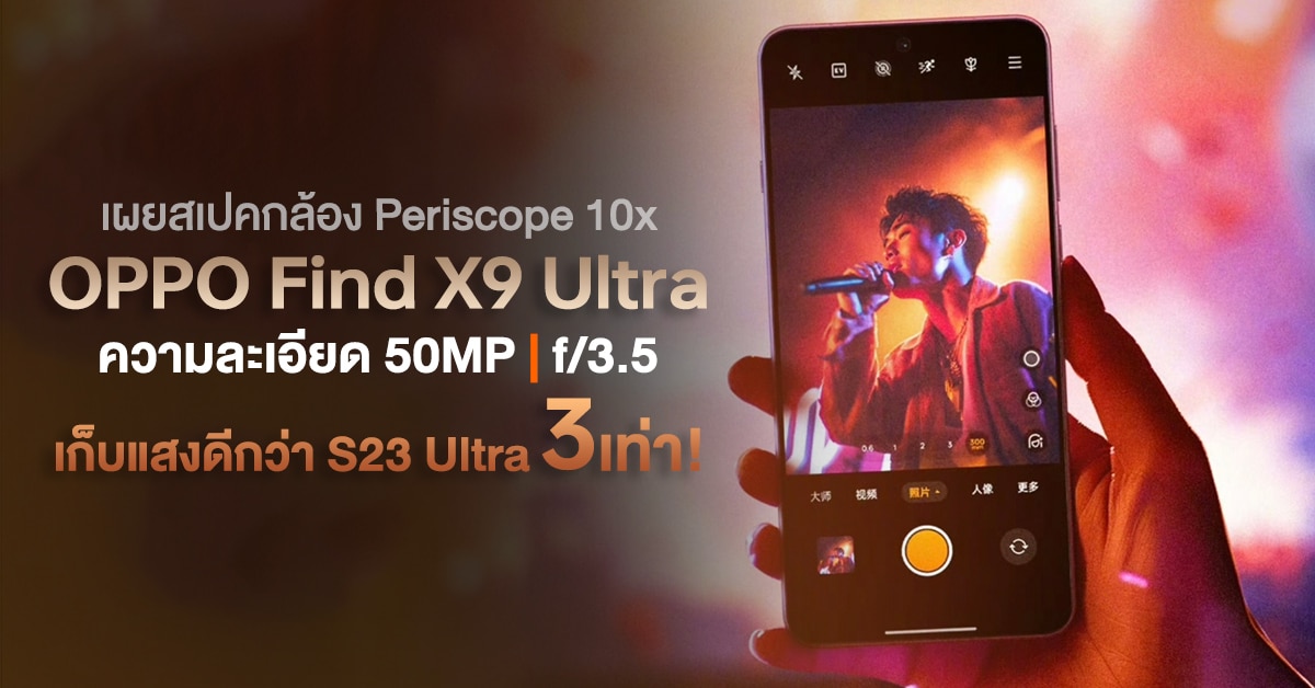 จอมแม่นเผย…กล้อง Periscope 10x ของ OPPO Find X9 Ultra ความละเอียด 50MP f/3.5 เก็บแสงได้มากกว่าของ S23 Ultra ถึง 3 เท่า!