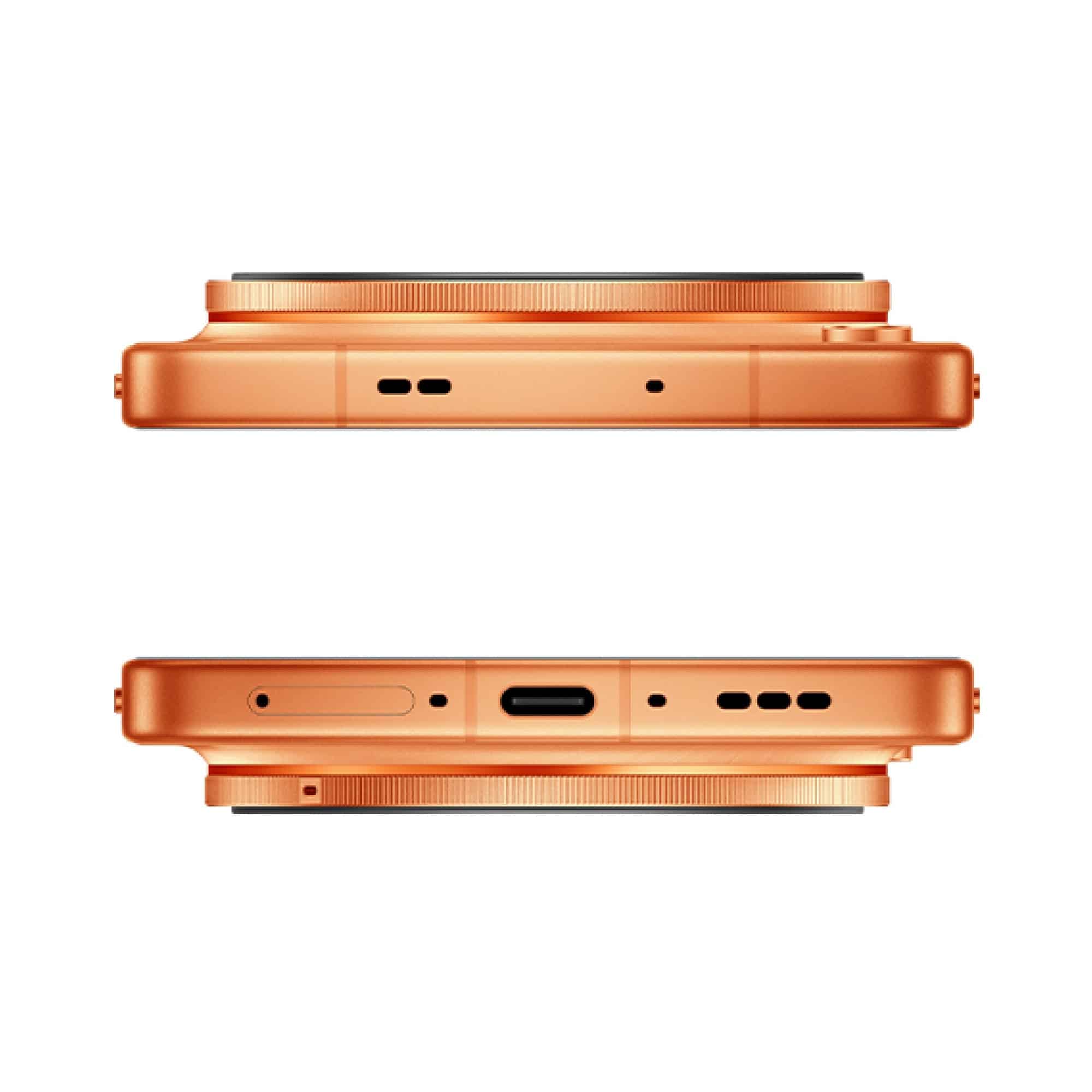 ด้านบน-ล่างตัวเครื่องก็จะมีช่องลำโพง พอร์ตการเชื่อมต่อ ช่องใส่ซิมตามปกติ ที่มุมนี้ เรายังจะได้เห็นตัวโมดูลกล้องที่ยกนูนขึ้นจากฝาหลัง มีลวดลายเลนส์กล้องรอบ ๆ และแถบสีส้มเพิ่มความอลังการอีกด้วย