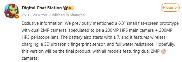 นอกจากนี้ แบตเตอรี่จะได้ถึง 7000mAh รองรับการชาร์จไร้สาย และมาตรฐานกันน้ำแบบเต็มรูปแบบที่คาดว่าจะเป้น IP68/69 และใช้ชิป MediaTek Dimensity 9500+ ครับ