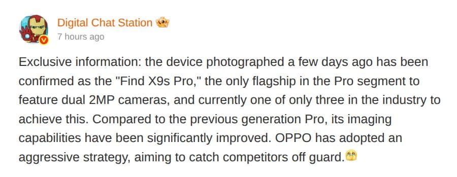 โดย Digital Chat Station ออกมาเผยผ่าน Weibo ว่าเรือธงจอเล็กจาก OPPO ที่พูดถึงมาตลอด (รวมถึงหลุดภาพเครื่องจริงมาวันก่อน) อาจใช้ชื่อจริงว่า “OPPO Find X9s Pro” มากกว่าแค่ Find X9s และจะเป็น Pro รุ่นเดียวที่มีกล้องหลัง 200MP คู่ซะด้วย!