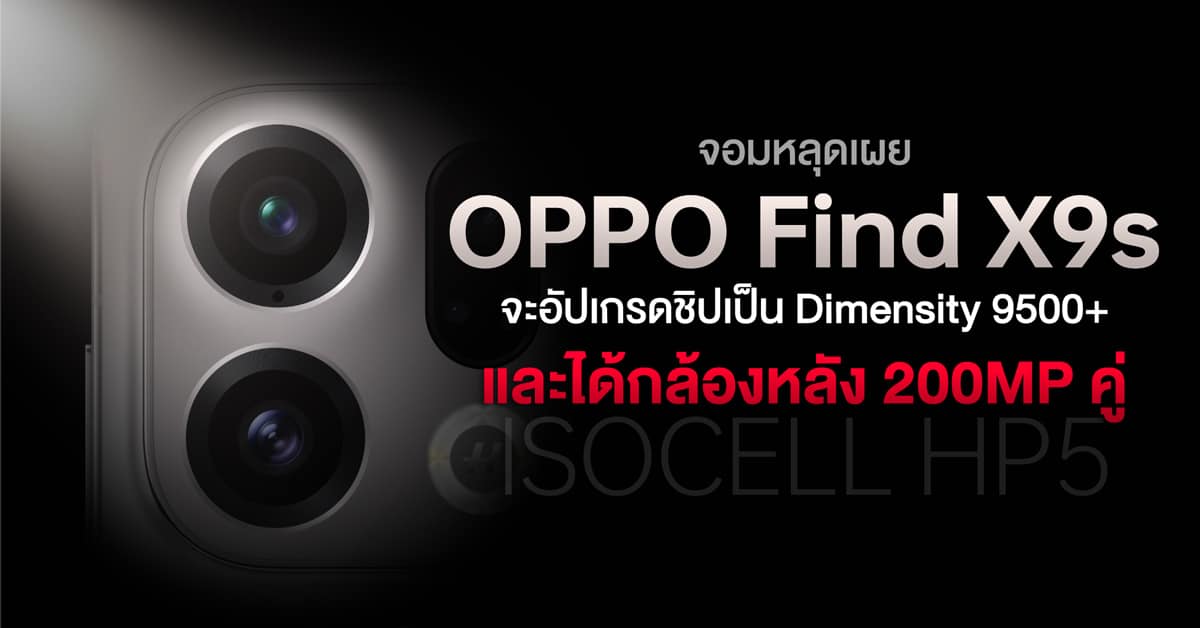 จอมหลุดเผยอีก…OPPO Find X9s จะใช้ชิป Dimensity 9500+ และได้กล้องหลัง 200MP คู่!?