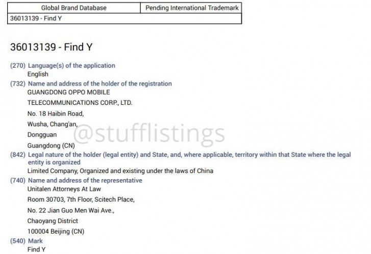 ตอนนี้มีผู้ค้นพบเครื่องหมายการค้าใหม่ของ OPPO โดยใช้ชื่อว่า Find Y นักวิเคราะห์หลายคนคาดการณ์ว่า Find Y นั้นจะเป็นตัวตายตัวแทนให้กับสมาร์ทโฟน OPPO Fine X ในอนาคต