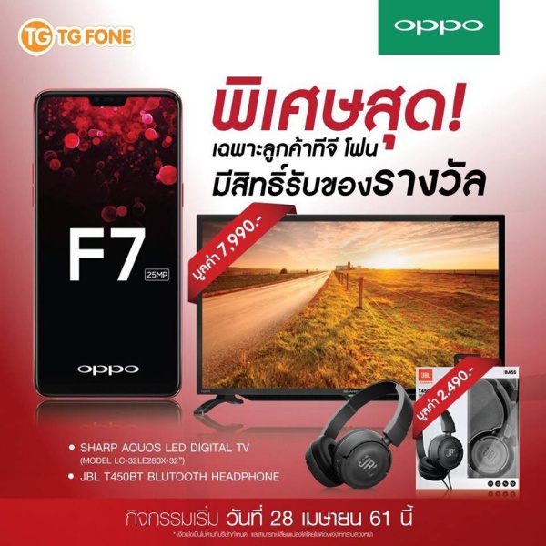 เรียกได้ว่าประสบความสำเร็จอย่างมากสำหรับ OPPO F7 หลังจากที่ทำการเปิดให้จอง Pre-Order ในวันที่ 11-24 เมษายนที่ผ่านมา ก็มียอดจองอย่างถล่มทลาย และเพื่อฉลองความสำเร็จ OPPO จึงจัดกิจกรรมพิเศษในวันที่ 28 เมษษายนนี้ขึ้นที่ Jaymart ศูนย์การค้าซีคอนสแควร์ศรีนครินทร์, CSC ศูนย์การค้าแฟชั่นไอส์แลนด์, Com 7 ที่ศูนย์การค้าเซ็นทรัลพลาซา พระราม 2 และ TG Fone ศูนย์การค้าเดอะมอลล์ บางกะปิ ชั้น 2 ซึ่งภายในงานจะได้พบกับกิจกรรมและของขวัญสุดพิเศษมากมายภายในวันงาน สำหรับลูกค้าที่ทำการ Pre-Order อย่าลืมไปร่วมกิจกรรมพิเศษในครั้งนี้กันนะ ถ้าไม่อยากพลาดความพิเศษที่รอคุณอยู่