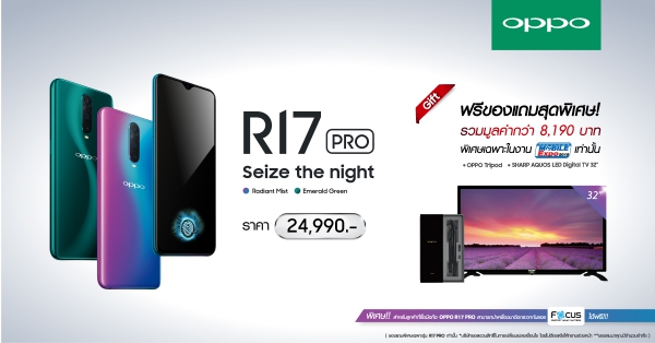 ซื้อ OPPO R17 Pro ในงาน รับไปเลย ขาตั้งกล้อง OPPO Tripod และ SHARP AQUOS LED DIGITAL TV ขนาด 32 นิ้ว (จำนวนจำกัด) ของแถมราคารวมมูลค่ากว่า 8,190 บาท!