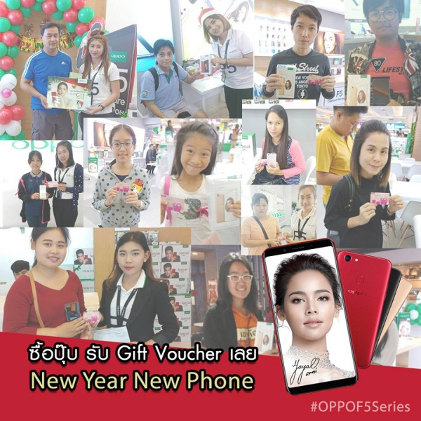 โค้งสุดท้ายกับกิจกรรมโดนๆ “OPPO New Year New Phone” เพียงซื้อ OPPO F5 Series รุ่นใดก็ได้ ไม่ว่าจะเป็น OPPO F5 ราคา 9,990 บาท OPPO F5 6 GB ราคา 13,990 บาทหรือ OPPO F5 Youth ราคา 8,990 บาท ก็รับฟรีไปเลยกับ Gift Voucher หรือบัตรของขวัญใช้แทนเงินสดมูลค่าสูงสุดกว่า 500 บาท! บอกเลยว่างานนี้ของรางวัลมีจำนวนจำกัดเท่านั้นนะ!