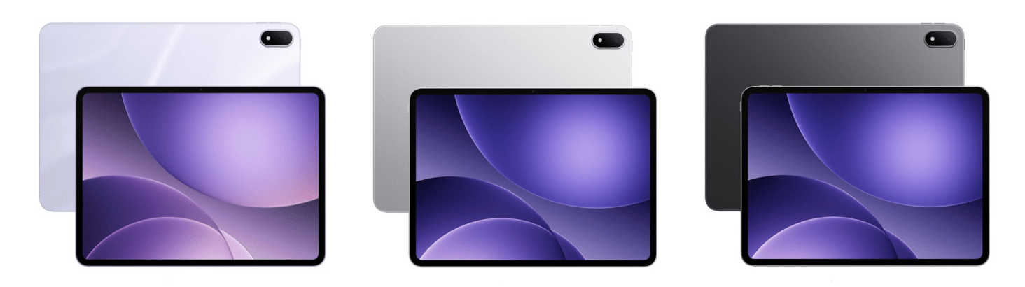 OPPO Pad 5 จะมีให้เลือก 3 สีคือ เทา, เงินและม่วง พร้อมกันนี้เรายังได้เห็นชุดอุปกรณ์เสริมอย่างเคสคีย์บอร์ดที่มีสีม่วงตามสีตัวเครื่อง และปากกา Stylus ที่น่าจะเสริมการทำงานได้เป็นอย่างดีอีกด้วย