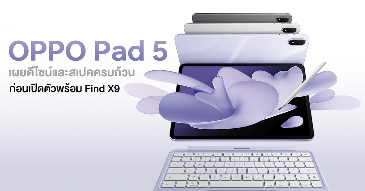 หลุดครบ…สเปคและดีไซน์ OPPO Pad 5 แท็บเล็ตรุ่นใหม่ ที่เตรียมเปิดตัวพร้อม Find X9 Series วันที่ 16 ต.ค.นี้
