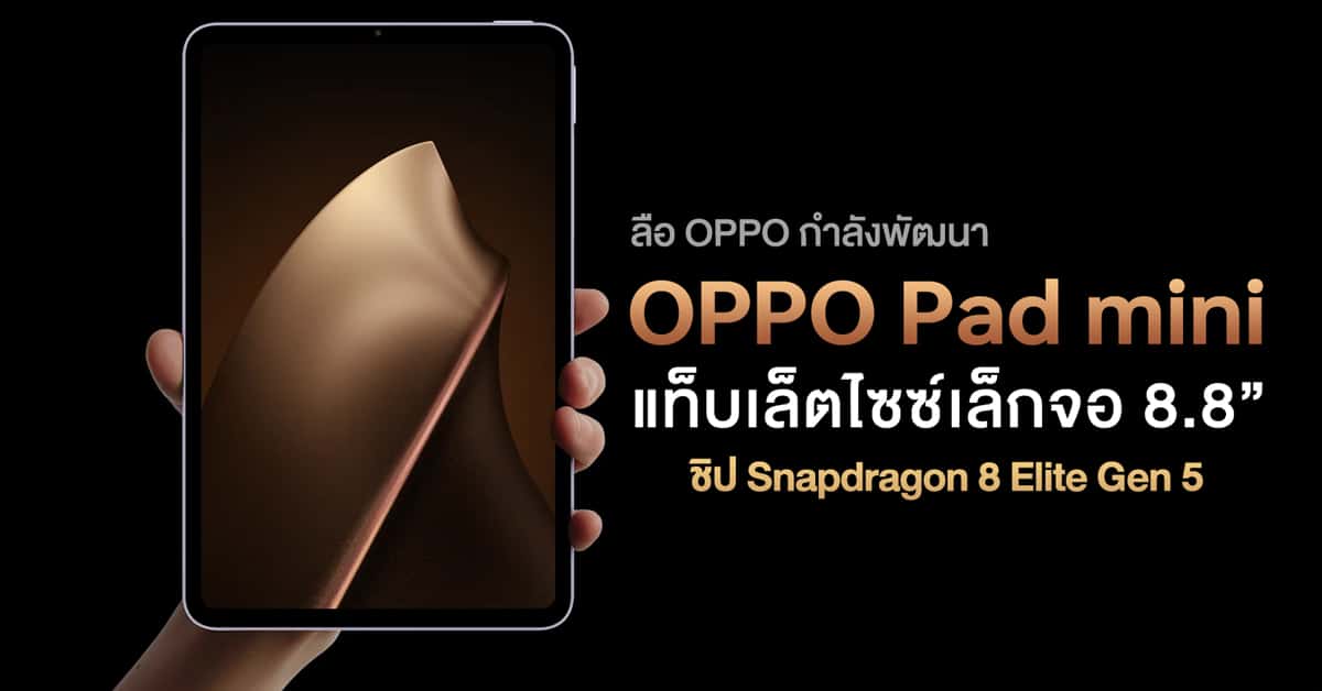 กระแสของแท็บเล็ตจอเล็กกำลังมาแรงขึ้นเรื่อย ๆ ล่าสุดก็มีรายงานว่า OPPO เองก็สนใจตลาดนี้เช่นกัน เพราะกำลังพัฒนาแท็บเล็ตจอ 8.8″ อยู่ และไม่ใช่แค่รุ่นกลาง ๆ นะ เพราะจะใช้ชิป Snapdragon 8 Elite Gen 5 ด้วย!