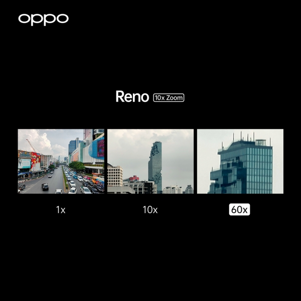 นอกจากจะซูมได้มากถึง 60 เท่าแล้ว OPPO ยังมีเทคโนโลยีที่สามารถซูม 10 เท่าแบบไม่สูญเสียรายละเอียด ด้วยเทคโนโลยีล่าสุด OPPO 10x Lossless Zoom เทคโนโลยีการซูมของ OPPO ที่เปิดตัวเป็นครั้งแรกในงาน Mobile World Congress 2019
