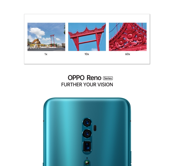 เรียกได้ว่าดีไซน์แรก สามารถเดาได้เลยว่า OPPO Reno Series จะมาพร้อมเทคโนโลยีการซูม 60 เท่า ด้วยกล้องหลัง 3 ตัว ซึ่งหาก OPPO Reno Series สามารถซูมได้ถึง 60 เท่า ก็ถือได้ว่า เป็นแบรนด์สมาร์ทโฟนที่สามารถซู