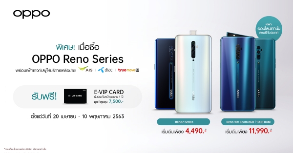 อยู่บ้านก็ช็อปได้! OPPO Reno Series ราคาเริ่มต้นเพียง 4,490 บาท เมื่อซื้อพร้อมแพ็กเกจของผู้ให้