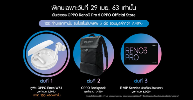 รวมมูลค่าทั้งหมด 9,489 บาท โปรโมชั่นจัดเต็ม แถมได้ใช้งานก่อนใครด้วย 100 ท่านเท่านั้น ไม่อยากพลาดคลิกเลย https://buynow.oppo.in.th/reno3pro